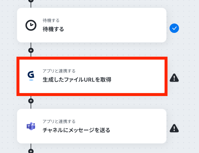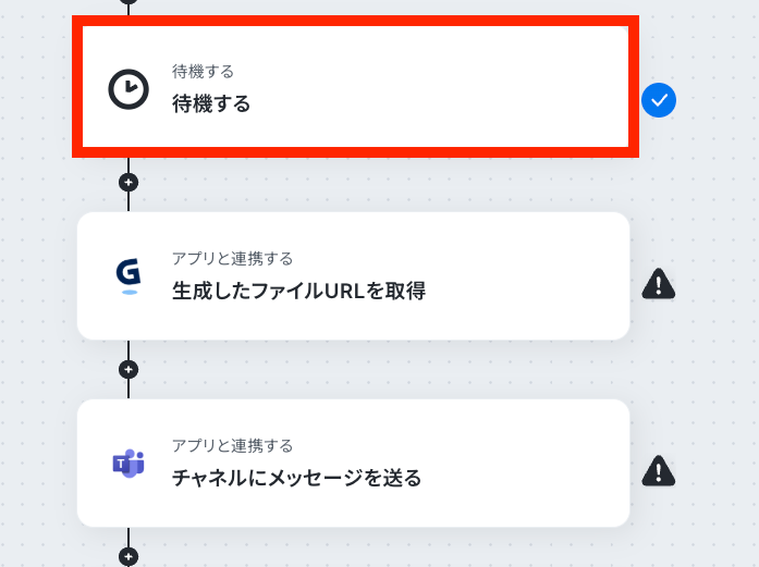 次のステップで生成したファイルURLを取得しますが、プレゼン資料の生成までに少し時間がかかるため、ここで「待機」という機能を入れます。