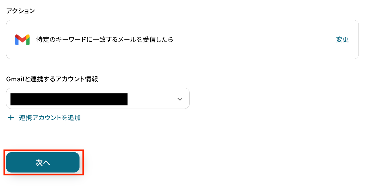 ステップ3:Gmailで特定キーワードのメールを受信するトリガーを設定する Gmailを使ったトリガー設定を行います。