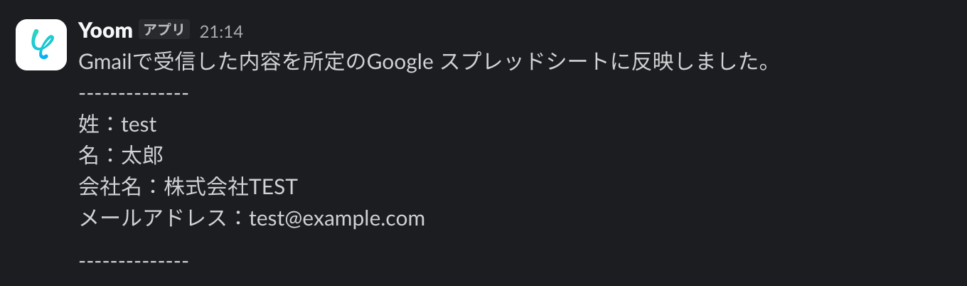 これで、Gmailで受信した問い合わせ内容を自動でスプレッドシートに保存し、Slackへ通知する仕組みの設定は完了です!