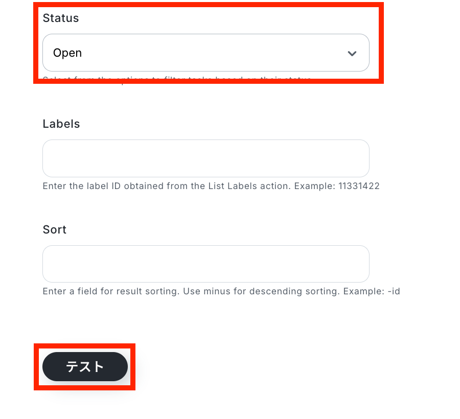 Task IDにサクほどコピーした「id」を記入して、「テスト」ボタンをクリックします!