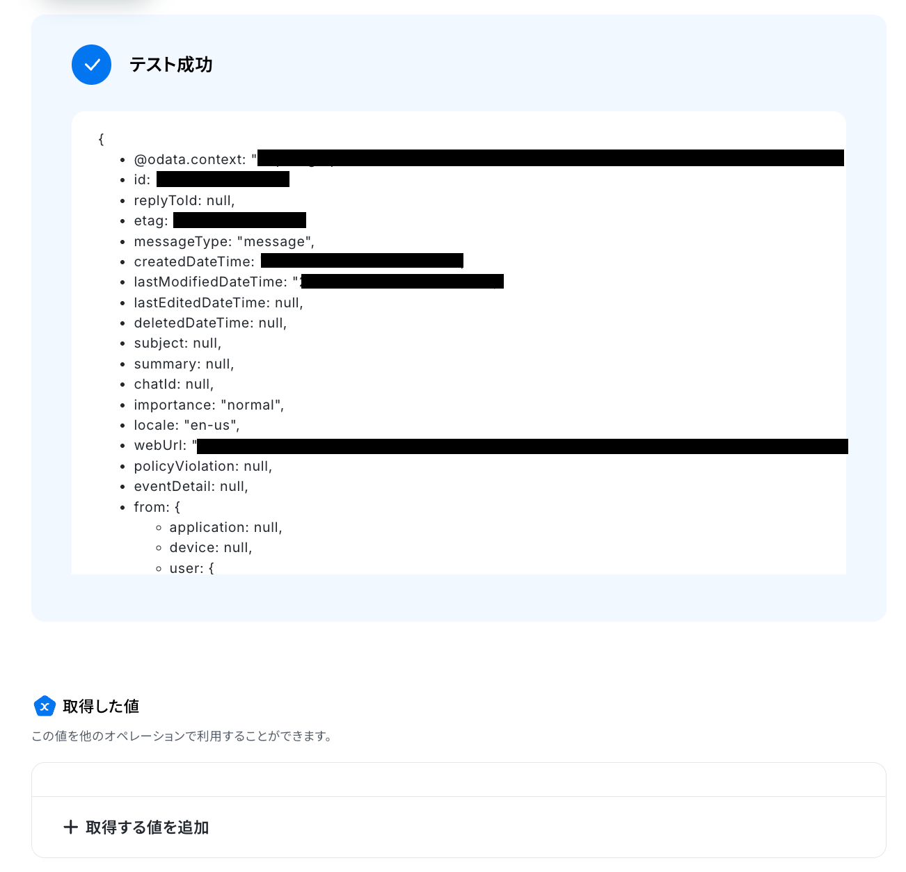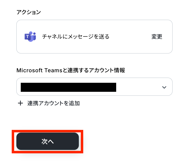 取得した値を利用して、Microsoft Teamsでメッセージを送信する設定を行います。