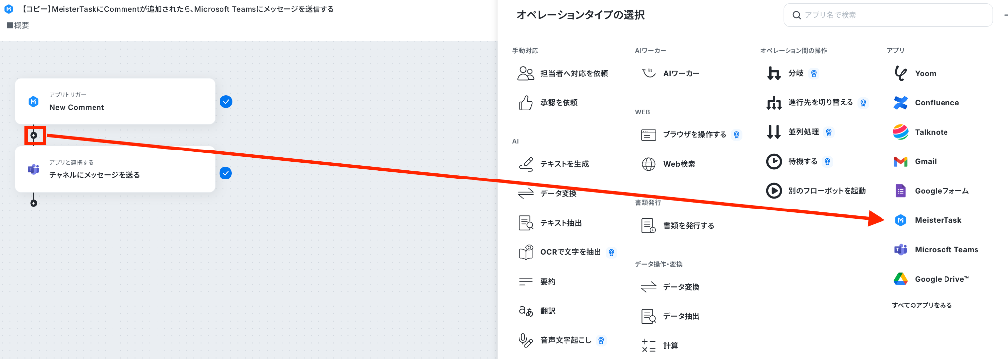 - MeisterTaskのトリガー設定とMicrosoft Teamsのアクション設定