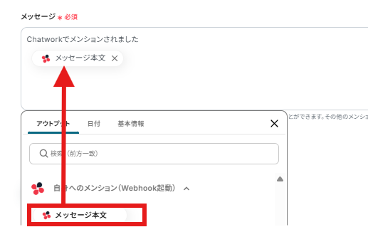 Chatworkでメンションされたことと、Chatworkで送信された内容を入力しましょう!