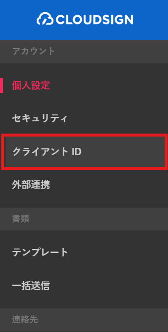 2. クライアントIDは、クラウドサインの管理画面で取得します。