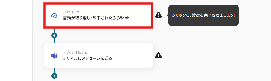 テンプレートの一番上にある、「書類が取り消し・却下されたら(Webhook起動)」をクリックしてください。