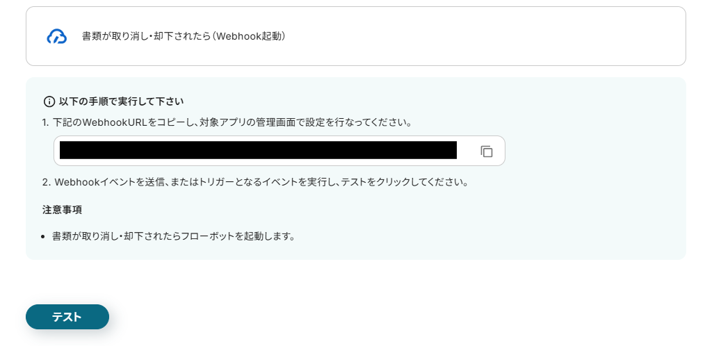 クラウドサイン管理画面でWebhookの設定が終わったら、テストを行います。
