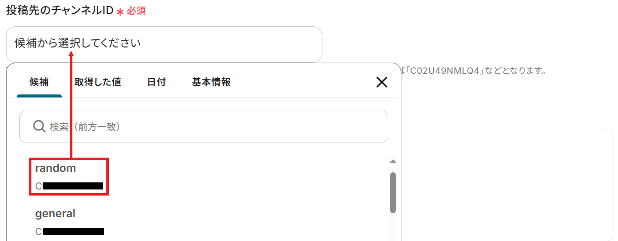 次に、投稿先のチャンネルIDを候補から選択してください。
