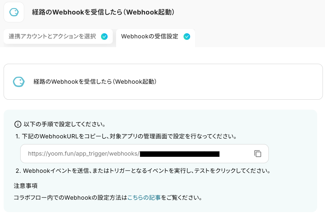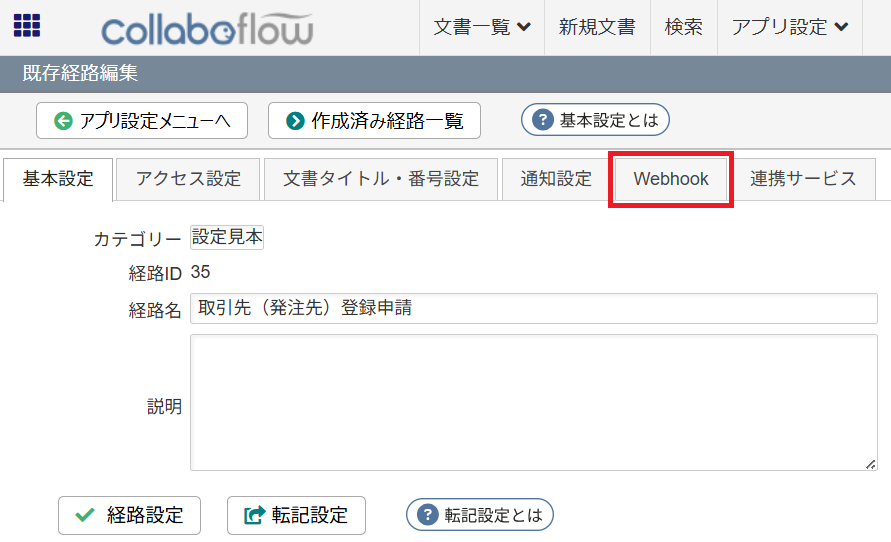 まず経路のWebhook設定 を参考に、コラボフローの設定画面でWebhook設定を行いましょう。
