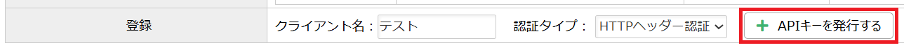 クライアント名 を入力後「APIキーを発行する」をクリックするとAPIキーを取得できます。