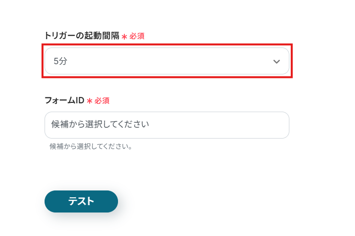 ・トリガーは5分、10分、15分、30分、60分の間隔で起動間隔を選択できます。