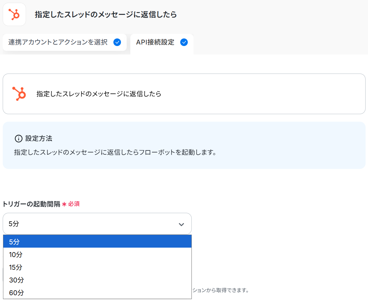 ※トリガーの起動タイミングは、5分・10分・15分・30分・60分のいずれかで設定できます。ご利用プランによって設定できるトリガーの最短間隔が違うので、その点は要チェックです。なお、基本的にはそのプランの最短の起動間隔でお使いいただくことをおすすめします。