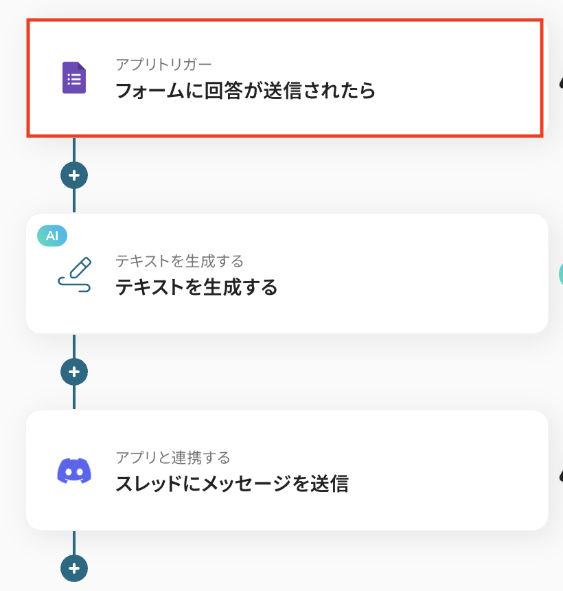 それではここから代表的な例として、Googleフォームに回答が送信された際に、その内容をAIで要約してDiscordのスレッドに自動で通知するフローを解説していきます!