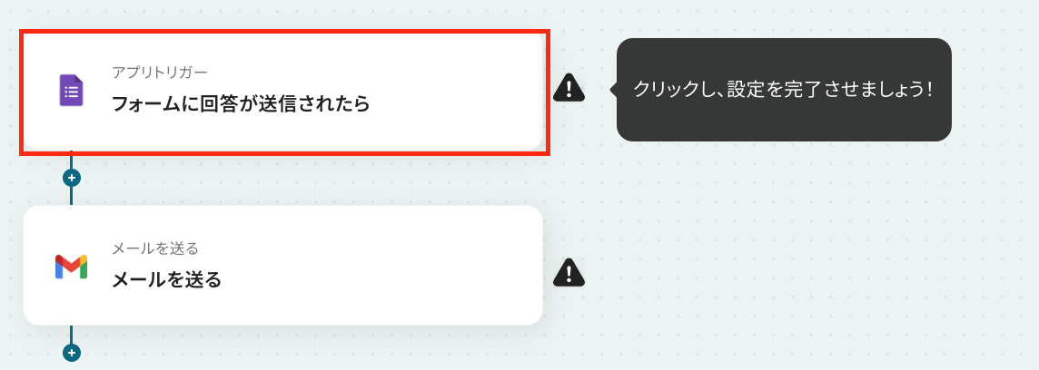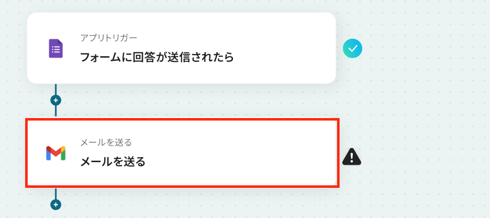 ステップ4:Gmailのアクション設定 いよいよ最後の設定です! ここでは、先ほど取得したGoogleフォームの回答内容をGmailに通知する設定を行います。 以下の赤枠をクリックしましょう。
