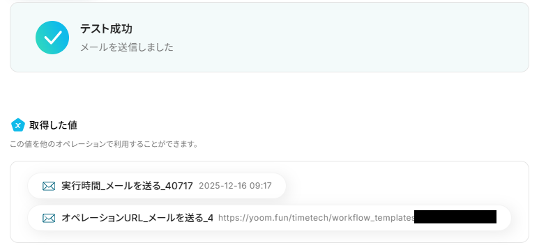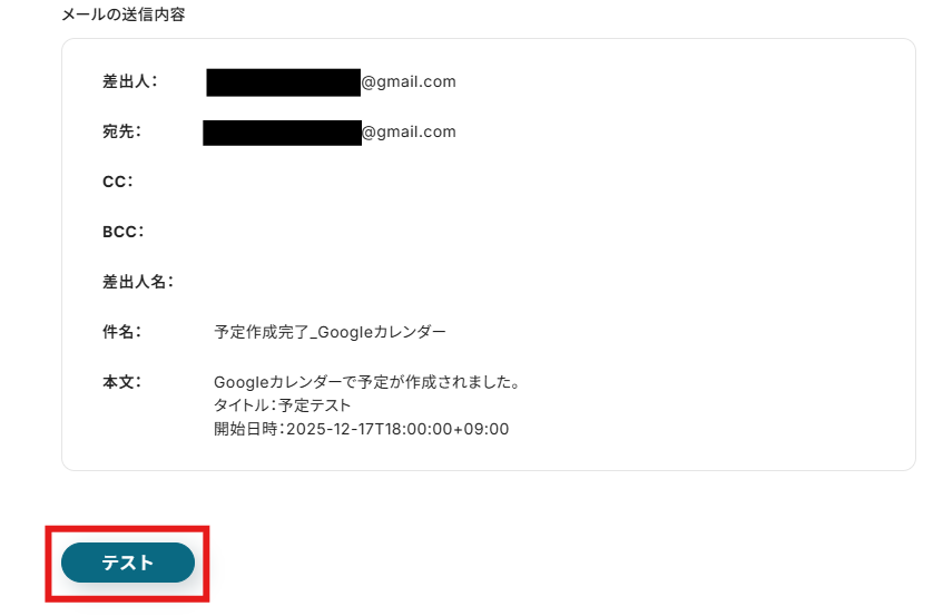 ※クリックすると実際にメールが送信されますので、宛先にはテストしても問題ないメールアドレスを入れておいてください。
