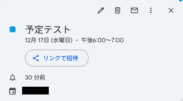 ここまで入力し終わったら、Googleカレンダーに予定を作成します。