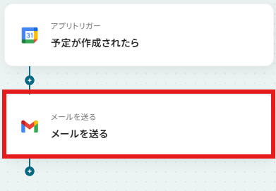 - 最後に、オペレーションでGmailを選択し、「メールを送る」アクションを設定することで、予定作成時に自動でメールが送信されます。