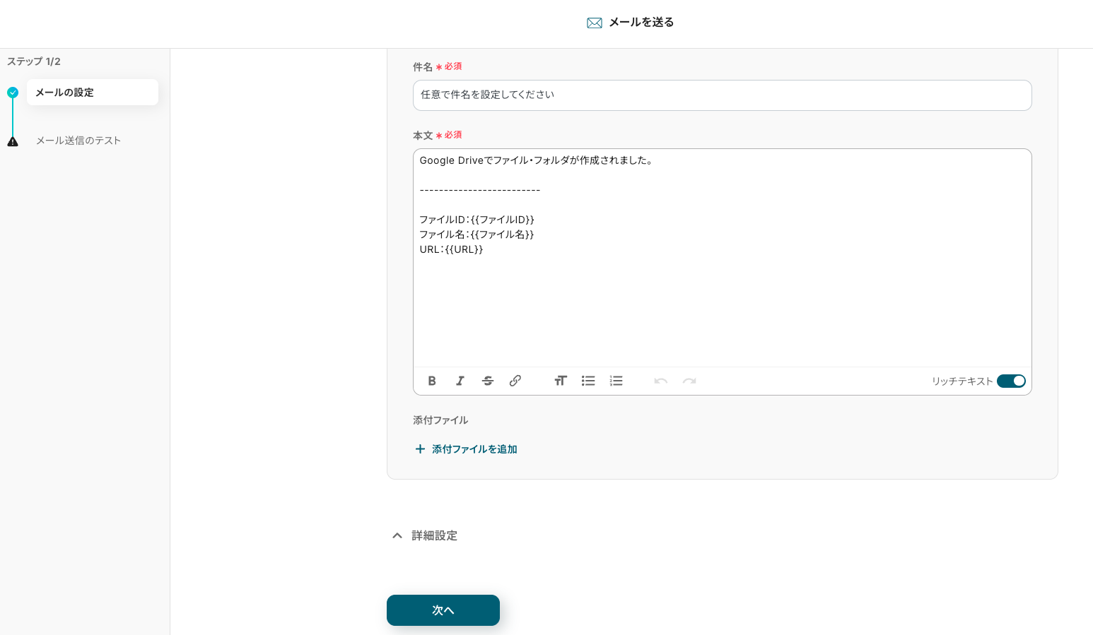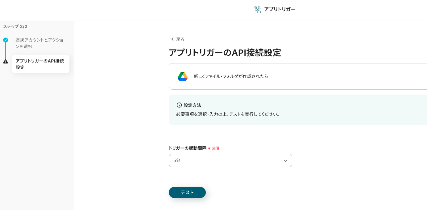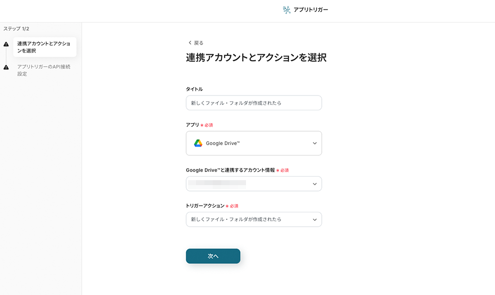 ステップ3:アプリトリガー「新しくファイル・フォルダが作成されたら」