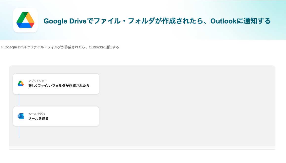 本記事では、「Google Driveでファイル・フォルダが作成されたら、Outlookに通知する」フローボットの設定を解説します。