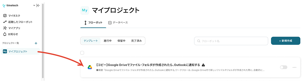 コピーしたテンプレートは、マイプロジェクトに追加されます。マイプロジェクトは左のメニューバーからアクセス可能です。