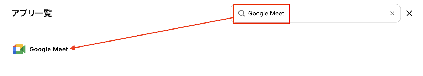 アプリ一覧は、検索窓を使いGoogle Meetを選択してください。