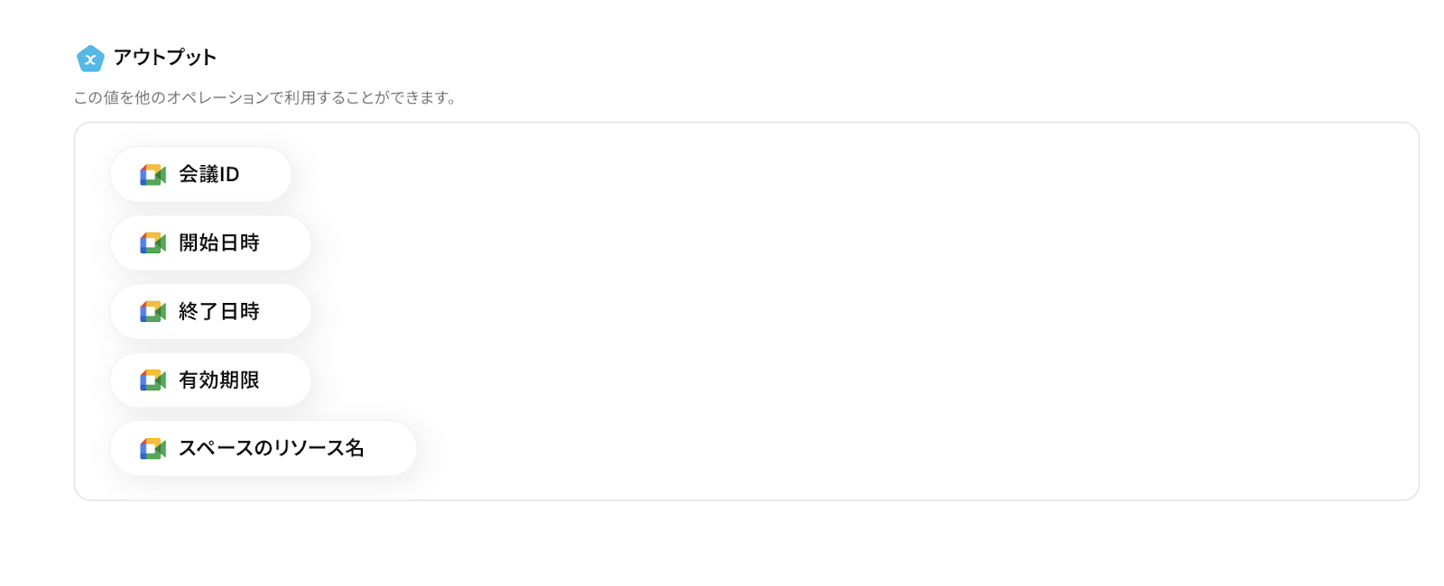 Google Meetの情報がアウトプットとして取得できたら、保存してください。