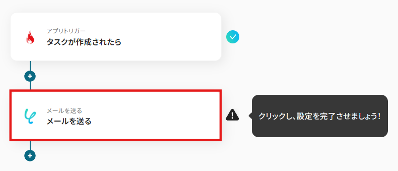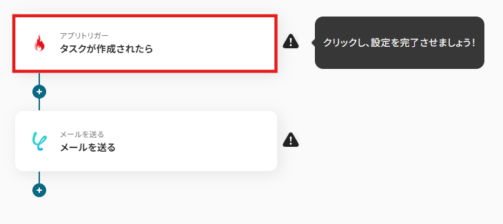 ホットプロファイルでタスクが作成されたことをYoomのメール機能で通知する設定を行います。