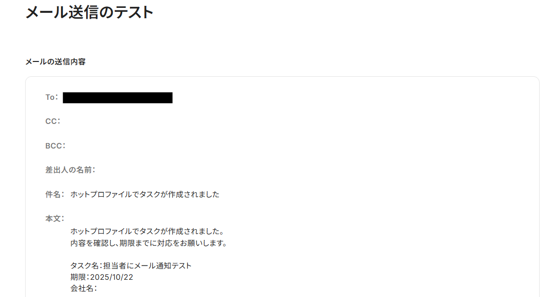 件名にはタスクが作成されたことが分かるように入力しています。