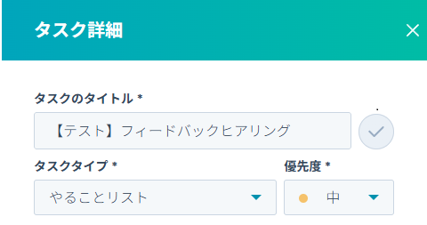 タスクの内容は架空の情報(「テスト商談」や「テスト案内」など)でOKです。