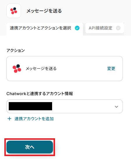 続いて、Chatworkに通知するアクション設定です。