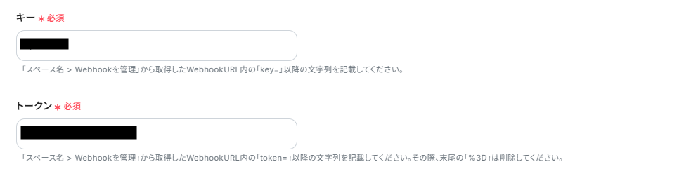 キーとトークンは、こちらの記事 を参考に入力しましょう。