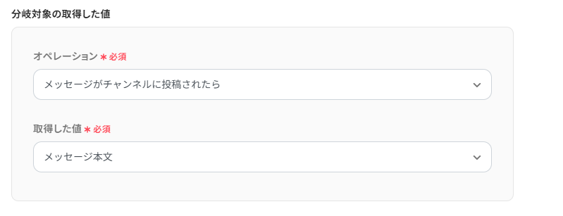 分岐対象の取得した値は、以下のように設定してください。