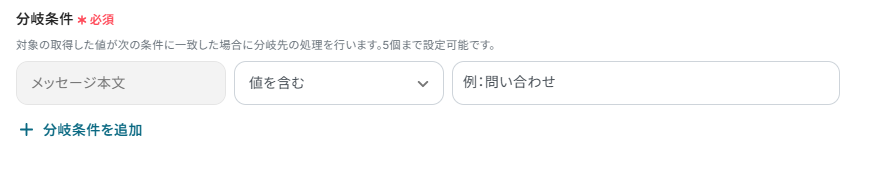 分岐条件は、「問い合わせ」に設定しましょう。