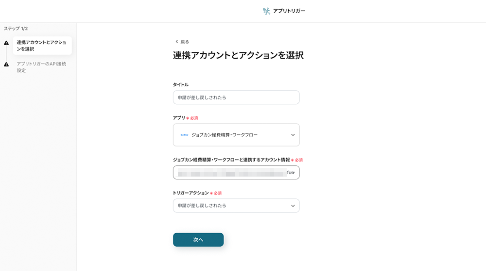 ステップ3:アプリトリガー「申請が差し戻されたら」