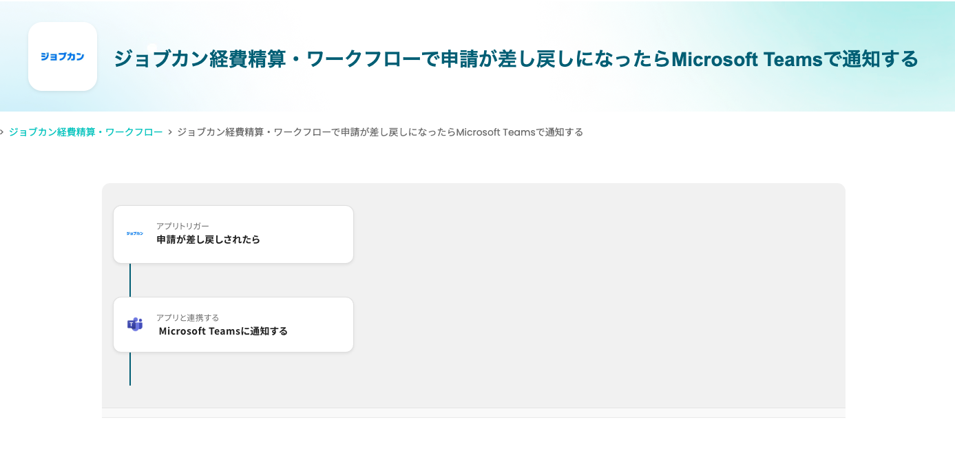 本記事では、「ジョブカン経費精算・ワークフローで申請が差し戻しになったらMicrosoft Teamsで通知する」フローボットの設定を解説します。