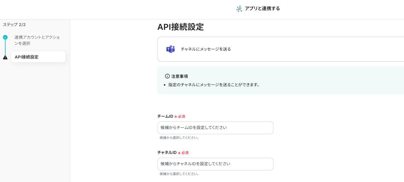 ステップ4:アプリと連携する「Microsoft Teamsに通知する」