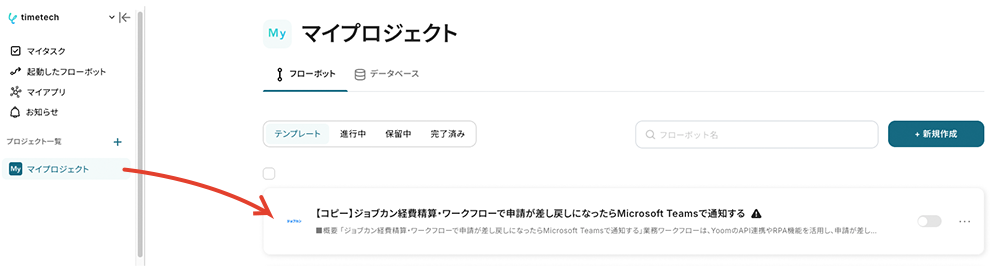 コピーしたテンプレートは、マイプロジェクトに追加されます。マイプロジェクトは左のメニューバーからアクセス可能です。