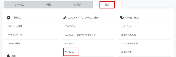 設定タブを押し、「Webhook」を選択してください。