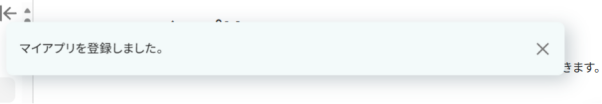 保存を押すと、下記画面になりますので赤枠の「アプリの設定」をクリックしてください。
