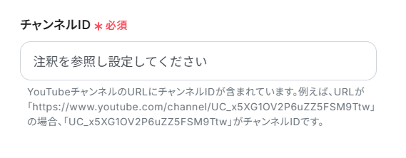 チャンネルIDは、枠外の注釈を読み、YouTubeチャンネルのURLから設定しましょう。