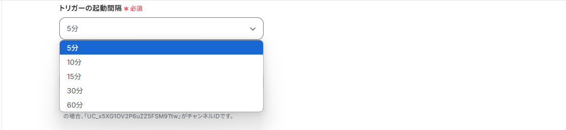 トリガーの起動タイミングは、5分、10分、15分、30分、60分のいずれかを選択することが可能です。