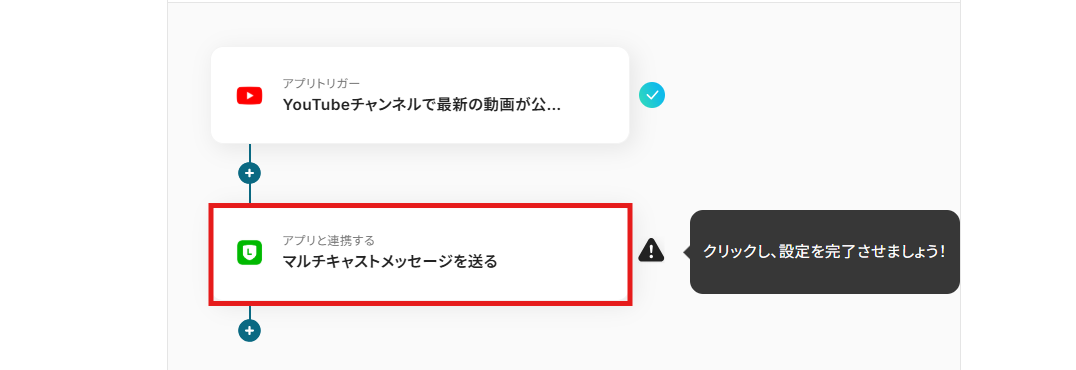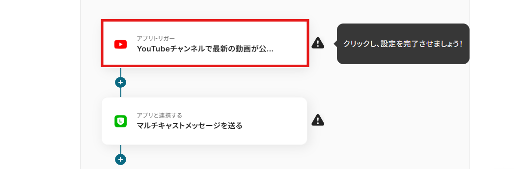 - YouTubeのトリガー設定およびLINE公式アカウントのアクション設定