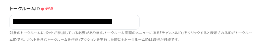 メッセージを送信したいトークルームのチャンネルIDをコピーし、入力してください。