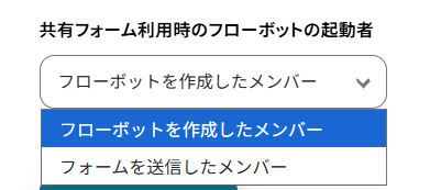 デフォルトでフローボットを作成したメンバーが選択されていますが、プルダウンメニューから変更することも可能です。
