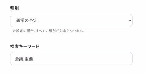 ※例:「通常の予定」から「会議」「重要」といったキーワードを含む予定のみを通知する場合