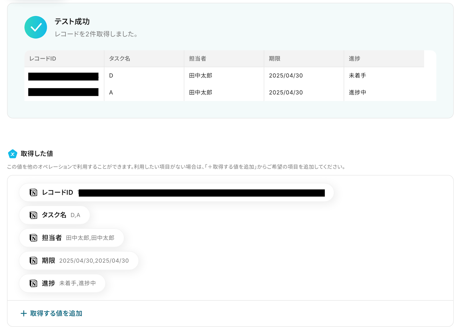 ※Notionに今日の日付がない場合はエラーになるので、テスト用に本日の日付のタスクを作成しておくと良いかもしれません!