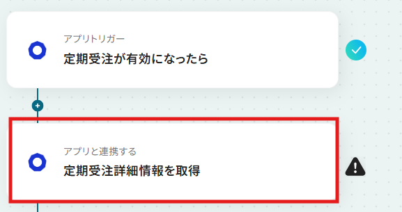 トリガーアクションは、「定期受注詳細情報を取得」のままで次に進みましょう!