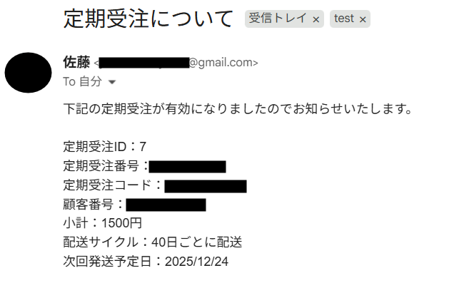 Webhookの情報を保存したら、次にテスト可能な顧客に対してテスト用の定期受注を作成しましょう!