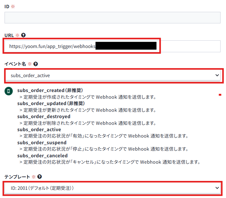 Yoomの操作画面からコピーしてきた、Webhook URLを貼り付けてください。