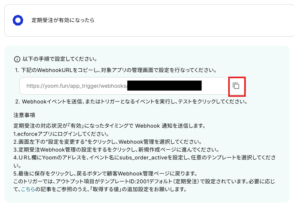 赤枠内のWebhook URLをコピーして、ecforceに移動してください。