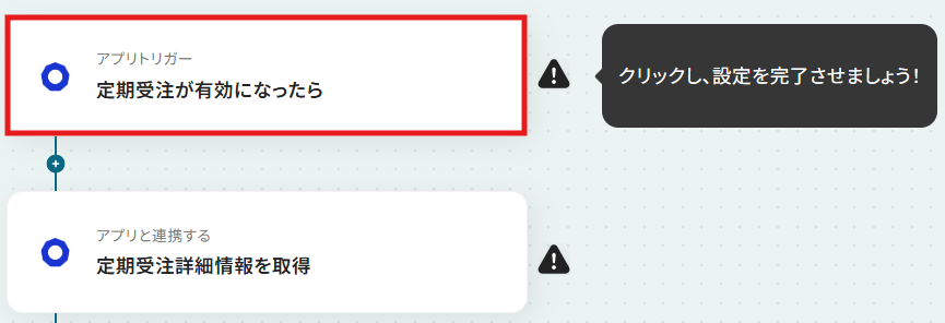 トリガーは、「定期受注が有効になったら」のままで次に進みましょう!